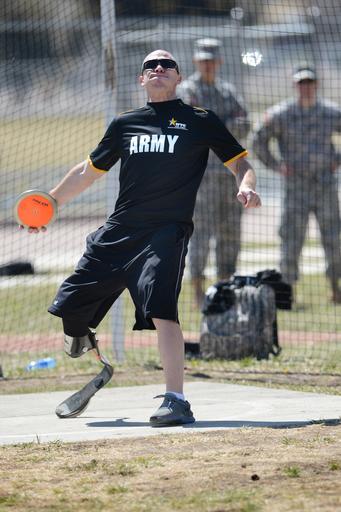 Keywords: 2013 Warrior Games 130504-D-FW736-024.jpg en U S Army Sgt Ryan McIntosh a member of the Army Wounded Warrior field team practices discus for the 2013 Warrior Games May 4 2013 in Colorado Springs Colo The Warrior Games is an annual event allowing wounded ill and injured service members and veterans to compete in Paralympic sports including archery cycling shooting sitting volleyball track and field swimming and wheelchair basketball DoD photo by Marvin Lynchard/Released <br>Unit Defense Imagery Management Operations Center 2013-05-04 Marv Lynchard https //www dvidshub net/image/936271/2013-warrior-games 130504-D-FW736-024 2013-05-20 07 06 COLORADO SPRINGS CO US PD-USGov Warrior Games Images from DoD uploaded by Fæ |