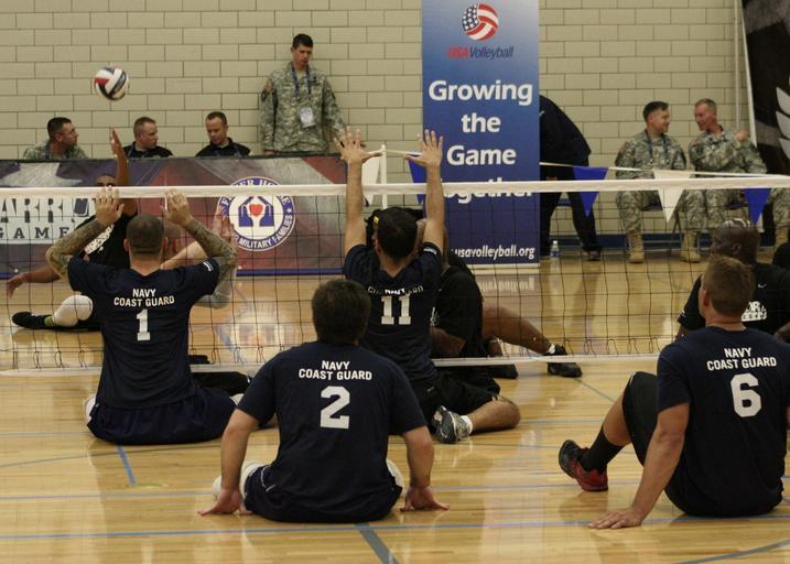 Keywords: 2013 Warrior Games Seated Volleyball 130414-N-DT940-470.jpg en Team Navy/Coast Guard members strategically position themselves in a game of seated volleyball against Team Army during the 2013 Warrior Games May 14 The Warrior Games includes competitions in archery cycling seated volleyball shooting swimming track and field and wheelchair basketball The goal of the Warrior Games is not necessarily to identify the most skilled athletes but rather to demonstrate the incredible potential of wounded warriors through competitive sports More than 200 wounded ill or injured service members from the U S and U K armed forces are scheduled to compete in the Paralympics-style competition May 11-16 U S Navy photo by Mass Communication Specialist 1st Class Erica R Gardner/Released 2013-05-14 Petty Officer 1st Class Erica R Gardner https //www dvidshub net/image/932382 130414-N-DT940-470 2013-05-15 13 52 COLORADO SPRINGS CO US PD-USGov-Military-Navy 2013 Warrior Games Images from DoD uploaded by Fæ |