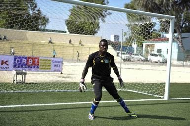Keywords: outdoor sport Goalkeeper MartinElungat, a Ugandan playing for Somali Football Club Elman in practice before the game against Horseed Football Club at Banadir Stadium. This was during the opening match of the Somali premier league's new season in Abdiaziz district of the capital Mogadishu on December 19, 2014. Sports in Somalia is recovering attracting foreign players as a result of the relative peace and progress witnessed in the country. AMISOM Photo / Ilyas Ahmed Goalkeeper MartinElungat, a Ugandan playing for Somali Football Club Elman in practice before the game against Horseed Football Club at Banadir Stadium. This was during the opening match of the Somali premier league's new season in Abdiaziz district of the capital Mogadishu on December 19, 2014. Sports in Somalia is recovering attracting foreign players as a result of the relative peace and progress witnessed in the country. AMISOM Photo / Ilyas Ahmed 2014 12 19 Somali Football-17 (16145413375).jpg en Goalkeeper MartinElungat a Ugandan playing for Somali Football Club Elman in practice before the game against Horseed Football Club at Banadir Stadium This was during the opening match of the Somali premier league's new season in Abdiaziz district of the capital Mogadishu on December 19 2014 Sports in Somalia is recovering attracting foreign players as a result of the relative peace and progress witnessed in the country AMISOM Photo / Ilyas Ahmed 2014-12-19 14 58 40 https //www flickr com/photos/au_unistphotostream/16145413375/ Flickr en AMISOM Public Information AMISOM Public Information https //flickr com/photos/61765479 N08/16145413375 2015-11-28 08 58 09 cc-zero cc-0 Photographs by the African Union Mission to Somalia Sports in Somalia Goalkeeper MartinElungat, a Ugandan playing for Somali Football Club Elman in practice before the game against Horseed Football Club at Banadir Stadium. This was during the opening match of the Somali premier league's new season in Abdiaziz district of the capital Mogadishu on December 19, 2014. Sports in Somalia is recovering attracting foreign players as a result of the relative peace and progress witnessed in the country. AMISOM Photo / Ilyas Ahmed |