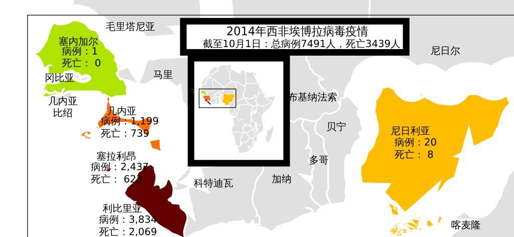 Keywords: 2014 Ebola virus epidemic in West Africa zh-CN.svg 2014年西 埃博拉病毒疫情分布 图 2014-09-20 05 18 05 https //commons wikimedia org/wiki/File 2014_ebola_virus_epidemic_in_West_Africa svg Mikael Häggström translated by Sinopitt Other versions/2014 ebola virus epidemic in West Africa Cc-zero Uploaded with UploadWizard 2014 Ebola outbreak maps