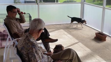 Keywords: Dave and Ryan Deci with Bryant and Wendy on the back porch on Christmas Day