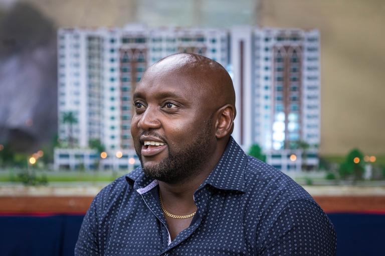 Keywords: kenya mombasa east africa nyali indian ocean port city import export property development real estate business investment tourism commerce trade hub industry coast my space properties residential construction people portrait KENYA, Mombasa: In a photograph taken by Make It Kenya 29 May 2015, Mwenda Thuranira, the CEO of My Space Properties, a real estate company based in Mombasa on Kenya's Indian Ocean coast, speaks during an interview at a business and investment expo hosted at Sarova White Sands Beach Resort. With the coastal tourism industry well-established and the city's seaport and container terminal being one of only two major entry and export points for the entire east Africa region and much of the land-locked hinterland, Mwenda established My Space Properties seven years ago after realising the potential in the city's growing real estate industry and Mombasa as an investment destination. With a number of residential and business developments in and around Nyali, My Space Properties is planning to expand north along the coast to Lamu, to the capital Nairobi and elsewhere in Kenya, as well as further afield to the Ugandan capital Kampala, and exhibits the current positive trend and upbeat attitude business has towards both Mombasa as a trading-hub and the rest of Kenya as an investment destination. MANDATORY CREDIT: MAKE IT KENYA PHOTO / STUART PRICE. KENYA, Mombasa: In a photograph taken by Make It Kenya 29 May 2015, Mwenda Thuranira, the CEO of My Space Properties, a real estate company based in Mombasa on Kenya's Indian Ocean coast, speaks during an interview at a business and investment expo hosted at Sarova White Sands Beach Resort. With the coastal tourism industry well-established and the city's seaport and container terminal being one of only two major entry and export points for the entire east Africa region and much of the land-locked hinterland, Mwenda established My Space Properties seven years ago after realising the potential in the city's growing real estate industry and Mombasa as an investment destination. With a number of residential and business developments in and around Nyali, My Space Properties is planning to expand north along the coast to Lamu, to the capital Nairobi and elsewhere in Kenya, as well as further afield to the Ugandan capital Kampala, and exhibits the current positive trend and upbeat attitude business has towards both Mombasa as a trading-hub and the rest of Kenya as an investment destination. MANDATORY CREDIT: MAKE IT KENYA PHOTO / STUART PRICE. |