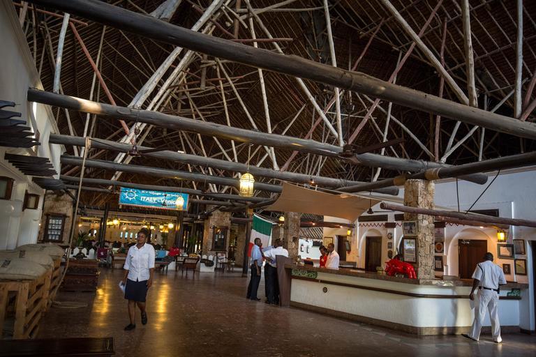 Keywords: kenya mombasa nyali voyager beach resort heritage hotels tourism tourists domestic foreign coast indian ocean sea holiday hotel getaway sun curios truss architecture building structure building KENYA, Mombasa: A photograph taken by Make It Kenya shows a general view of the reception area and foyer of Heritage Hotels' Voyager Beach Resort in Mombasa, 28 May 2015. MANDATORY CREDIT: MAKE IT KENYA PHOTO / STUART PRICE. KENYA, Mombasa: A photograph taken by Make It Kenya shows a general view of the reception area and foyer of Heritage Hotels' Voyager Beach Resort in Mombasa, 28 May 2015. MANDATORY CREDIT: MAKE IT KENYA PHOTO / STUART PRICE. |