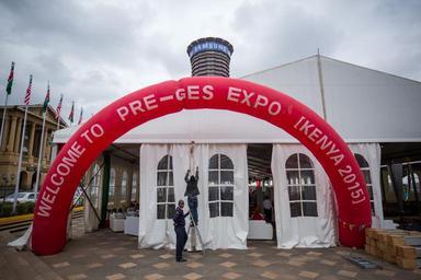 Keywords: kenya nairobi united states america global entrepreneur summit ges expo business innovators start-up startup commerce trade youth empowerment development president barack obama kenyatta international conference centre kicc sub-saharan subsaharan africa mentors investors government outdoor kenya nairobi united states america global entrepreneur summit ges expo business innovators start-up startup commerce trade youth empowerment development president barack obama kenyatta international conference centre kicc sub-saharan subsaharan africa mentors investors government outdoor KENYA, Nairobi: In a photograph taken by Make It Kenya 21 July 2015, a worker at the Pre-Global Entrepreneurship Summit (GES) Expo makes an adjustment to a display tent at the Kenyatta International Conference Centre in the Kenyan capital Nairobi. Final preparations are being made to host the Pre-GES Expo from 22-23 July ahead of US President Barack Obama's much-anticipated visit to the east African nation this weekend where he will address the main Global Entrepreneurship Summit which brings together entrepreneurs at all stages of business development, business leaders, mentors, and high-level government officials. MANDATORY CREDIT: MAKE IT KENYA PHOTO / STUART PRICE. KENYA, Nairobi: In a photograph taken by Make It Kenya 21 July 2015, a worker at the Pre-Global Entrepreneurship Summit (GES) Expo makes an adjustment to a display tent at the Kenyatta International Conference Centre in the Kenyan capital Nairobi. Final preparations are being made to host the Pre-GES Expo from 22-23 July ahead of US President Barack Obama's much-anticipated visit to the east African nation this weekend where he will address the main Global Entrepreneurship Summit which brings together entrepreneurs at all stages of business development, business leaders, mentors, and high-level government officials. MANDATORY CREDIT: MAKE IT KENYA PHOTO / STUART PRICE. KENYA, Nairobi: In a photograph taken by the Ministry of East African Affairs, Commerce and Tourism (MEAACT) 21 July 2015, a worker at the Pre-Global Entrepreneurship Summit (GES) Expo makes an adjustment to a display tent at the Kenyatta International Conference Centre in the Kenyan capital Nairobi. Final preparations are being made to host the Pre-GES Expo from 22-23 July ahead of US President Barack Obama's much-anticipated visit to the east African nation this weekend where he will address the main Global Entrepreneurship Summit which brings together entrepreneurs at all stages of business development, business leaders, mentors, and high-level government officials. MANDATORY CREDIT: MEAACT PHOTO / STUART PRICE. KENYA, Nairobi: In a photograph taken by the Ministry of East African Affairs, Commerce and Tourism (MEAACT) 21 July 2015, a worker at the Pre-Global Entrepreneurship Summit (GES) Expo makes an adjustment to a display tent at the Kenyatta International Conference Centre in the Kenyan capital Nairobi. Final preparations are being made to host the Pre-GES Expo from 22-23 July ahead of US President Barack Obama's much-anticipated visit to the east African nation this weekend where he will address the main Global Entrepreneurship Summit which brings together entrepreneurs at all stages of business development, business leaders, mentors, and high-level government officials. MANDATORY CREDIT: MEAACT PHOTO / STUART PRICE. |