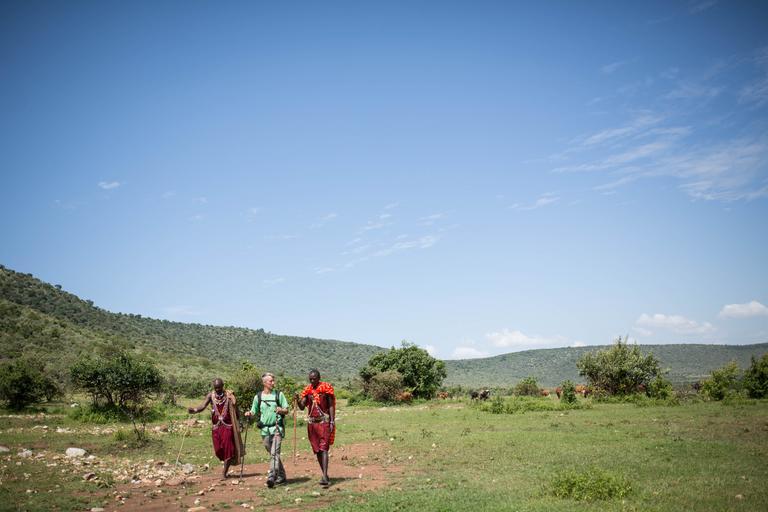 | Keywords: kenya travel tourism culture tradition maasai mara national reserve north conservancy wildlife conservation walking village manyatta traditional contemporary lifestyles modern world 21st century change development outdoor landscape sky hill KENYA, Maasai Mara: In a photograph taken by Make It Kenya 24 June 2015, author and travel writer Stuart Butler and his Maasai guide and companion Josphat Mako walk with a Maasai known as Lemeria in the Mara North Conservancy adjacent to Kenya's world famous Maasai Mara National Reserve. Throughout the months of May and June, Stuart and Mako walked over 200km across traditional lands belonging to Kenya's Maasai. Embarking from the high, remote and forested Loita Hills they headed west, skirting the edge of the world famous Maasai Mara National Reserve, passing through private and community conservancies before finishing at the foot of the Oloololo Escarpment. During the expedition, Stuart and Mako visited numerous Maasai villages known as manyattas spending time with both past and present generations of Maasai people, learning about their traditional cultures and contemporary Maasai lifestyles, and the pressure of the modern world and the 21st Century, conservation, political pressures and tourism, all of which influence and contribute to Maasai life today. MANDATORY CREDIT: MAKE IT KENYA PHOTO / STUART PRICE. KENYA, Maasai Mara: In a photograph taken by Make It Kenya 24 June 2015, author and travel writer Stuart Butler and his Maasai guide and companion Josphat Mako walk with a Maasai known as Lemeria in the Mara North Conservancy adjacent to Kenya's world famous Maasai Mara National Reserve. Throughout the months of May and June, Stuart and Mako walked over 200km across traditional lands belonging to Kenya's Maasai. Embarking from the high, remote and forested Loita Hills they headed west, skirting the edge of the world famous Maasai Mara National Reserve, passing through private and community conservancies before finishing at the foot of the Oloololo Escarpment. During the expedition, Stuart and Mako visited numerous Maasai villages known as manyattas spending time with both past and present generations of Maasai people, learning about their traditional cultures and contemporary Maasai lifestyles, and the pressure of the modern world and the 21st Century, conservation, political pressures and tourism, all of which influence and contribute to Maasai life today. MANDATORY CREDIT: MAKE IT KENYA PHOTO / STUART PRICE.  |