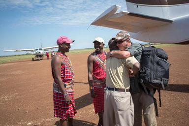 | Keywords: kenya maasai mara national reserve idaho united states america usa conservation wildlife animals tourism holiday safari wilderness culture biodiversity landscape outdoor KENYA, Maasai Mara: In a photograph taken by Make It Kenya 26 June 2015, Bill Rautsaw from central Idaho in the United States greets old friends from Entim Camp on his arrival at Olkiombo Airstrip in Kenya's Maasai Mara National Reserve. A repeat and regular visitor to Kenya, the retired United States Forest Service worker and conservationist feels a strong link between his home town and the East African nation through his involvement with conservation and his work with endangered species. Rautsaw says coming to Kenya changed his life, enhancing his love and feelings for the natural world, exposing him to a wide variety of cultures through the country's biodiversity, wildlife, and landscapes. By his own admission, Rautsaw says Idaho is just about as far away from Kenya's tropical beaches and coastline and it's world famous Maasai Mara National Reserve as you can get, but it's more than worth the trip, and the distance is worth every second that you spend in the country. It's a country of many choices he says, and one definitely not to be missed. MANDATORY CREDIT: MAKE IT KENYA PHOTO / STUART PRICE. KENYA, Maasai Mara: In a photograph taken by Make It Kenya 26 June 2015, Bill Rautsaw from central Idaho in the United States greets old friends from Entim Camp on his arrival at Olkiombo Airstrip in Kenya's Maasai Mara National Reserve. A repeat and regular visitor to Kenya, the retired United States Forest Service worker and conservationist feels a strong link between his home town and the East African nation through his involvement with conservation and his work with endangered species. Rautsaw says coming to Kenya changed his life, enhancing his love and feelings for the natural world, exposing him to a wide variety of cultures through the country's biodiversity, wildlife, and landscapes. By his own admission, Rautsaw says Idaho is just about as far away from Kenya's tropical beaches and coastline and it's world famous Maasai Mara National Reserve as you can get, but it's more than worth the trip, and the distance is worth every second that you spend in the country. It's a country of many choices he says, and one definitely not to be missed. MANDATORY CREDIT: MAKE IT KENYA PHOTO / STUART PRICE. |