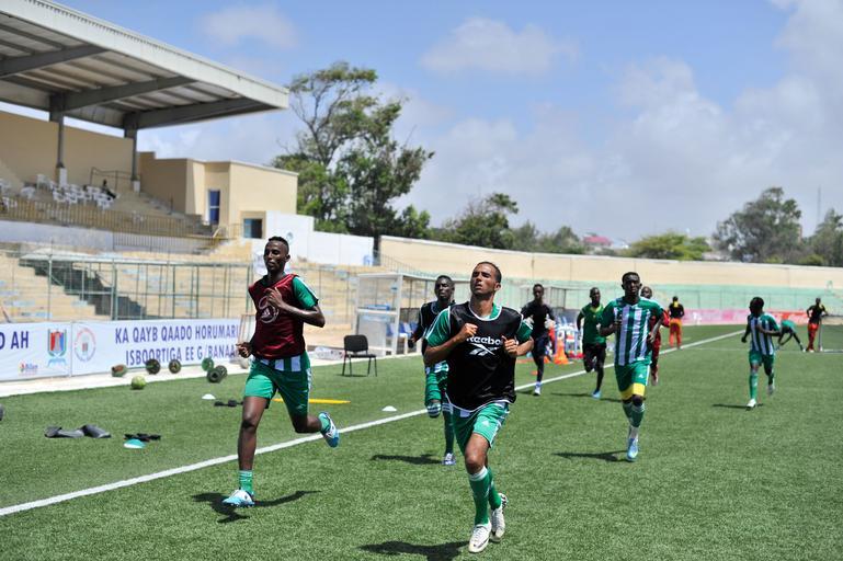 Keywords: outdoor The Somalia national soccer team seen doing drills during a training session at Banadir stadium in Mogadishu on August 29 2015, in preparation for the upcoming World Cup Qualifiers. Sports in Somalia is recovering as a result of the relative peace and progress witnessed in the country. AMISOM Photo / Ilyas Ahmed The Somalia national soccer team seen doing drills during a training session at Banadir stadium in Mogadishu on August 29 2015, in preparation for the upcoming World Cup Qualifiers. Sports in Somalia is recovering as a result of the relative peace and progress witnessed in the country. AMISOM Photo / Ilyas Ahmed