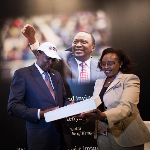 Keywords: make it kenya campaign launch president uhuru kenyatta magicalkenya whyilovekenya tembeakenya kenyaliving proudlykenyan businessafrica businessinafrica investmentkenya kenyameansbusiness investinkenya brandkenya africarising business commerce trade investment people groupshot ITALY, Milan: In a photograph taken by Make It Kenya, 8 September 2015, Hon. Phyllis Kandie (right) Minister for East African Affairs, Commerce and Tourism (MEAACT) hands Kenyan President Uhuru Kenyatta a presentation gift box marking the official launch the Make It Kenya international brand campaign in the Italian city of Milan. Introduced by MEAACT to promote and enhance Kenya’s position as a global leader in tourism, commerce and investment, the VIP event at Kenya House, an extension of Kenya’s Expo pavilion that is located in the centre of Milan and being used to further showcase Kenya’s cultural and economic assets, saw President Kenyatta officially activate the new digital portal MakeItKenya.com and supporting social media platforms. The digital elements have been specifically designed as a source of rich sharable content that will connect the world to Kenya, through people’s computers, smart phones and digital devices. MANDATORY CREDIT: MAKE IT KENYA PHOTO / STUART PRICE. ITALY, Milan: In a photograph taken by Make It Kenya, 8 September 2015, Hon. Phyllis Kandie (right) Minister for East African Affairs, Commerce and Tourism (MEAACT) hands Kenyan President Uhuru Kenyatta a presentation gift box marking the official launch the Make It Kenya international brand campaign in the Italian city of Milan. Introduced by MEAACT to promote and enhance Kenya’s position as a global leader in tourism, commerce and investment, the VIP event at Kenya House, an extension of Kenya’s Expo pavilion that is located in the centre of Milan and being used to further showcase Kenya’s cultural and economic assets, saw President Kenyatta officially activate the new digital portal MakeItKenya.com and supporting social media platforms. The digital elements have been specifically designed as a source of rich sharable content that will connect the world to Kenya, through people’s computers, smart phones and digital devices. MANDATORY CREDIT: MAKE IT KENYA PHOTO / STUART PRICE.