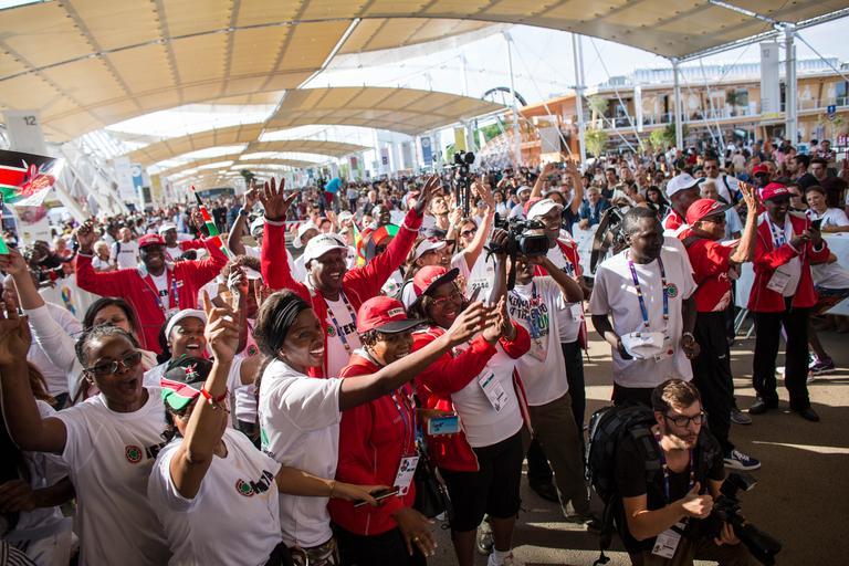 Keywords: kenya italy milan expo 2015 traditional singing dancing song dance race marathon athletes runners run 3km 10km music celebration showcase world coffee nation tourism investment crowd people ITALY, Milan: In a photograph taken by Make It Kenya 10 September 2015, Kenyans attending the Milan Expo 2015 cheer and celbrate as runners approach the finish line of a 3km family fun run as part of a number of events held in Milan this week to mark the Kenyan Week celebrations at Expo Milan 2015, a universal exhibition and platform for the exchange of ideas and shared solutions on the theme of food. MANDATORY CREDIT: MAKE IT KENYA PHOTO / STUART PRICE. ITALY, Milan: In a photograph taken by Make It Kenya 10 September 2015, Kenyans attending the Milan Expo 2015 cheer and celbrate as runners approach the finish line of a 3km family fun run as part of a number of events held in Milan this week to mark the Kenyan Week celebrations at Expo Milan 2015, a universal exhibition and platform for the exchange of ideas and shared solutions on the theme of food. MANDATORY CREDIT: MAKE IT KENYA PHOTO / STUART PRICE. |
