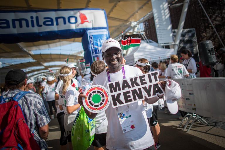 Keywords: kenya italy milan expo 2015 traditional singing dancing song dance race marathon athletes runners run 3km 10km music celebration showcase world coffee nation tourism investment ITALY, Milan: In a photograph taken by Make It Kenya 10 September 2015, former world champion marathon runner Paul Tergat poses for a photograph at the finish line of a 3km family fun run outside the Kenya Pavilion having just finished the race. Part of Kenyan Week celebrations at Expo Milan 2015, a universal exhibition and platform for the exchange of ideas and shared solutions on the theme of food, a number of events were held in Milan to mark the occasion, incluing the 3km family fun run completed by Hon. Phyllis Kandie, Minister for East Afrian Affairs, Commerce and Tourism (MEAACT) and the Kenya Expo Run With The Champions 10km race in which some of Kenyans top athletes competed against professional and enthusiast runners alike. MANDATORY CREDIT: MAKE IT KENYA PHOTO / STUART PRICE. ITALY, Milan: In a photograph taken by Make It Kenya 10 September 2015, former world champion marathon runner Paul Tergat poses for a photograph at the finish line of a 3km family fun run outside the Kenya Pavilion having just finished the race. Part of Kenyan Week celebrations at Expo Milan 2015, a universal exhibition and platform for the exchange of ideas and shared solutions on the theme of food, a number of events were held in Milan to mark the occasion, incluing the 3km family fun run completed by Hon. Phyllis Kandie, Minister for East Afrian Affairs, Commerce and Tourism (MEAACT) and the Kenya Expo Run With The Champions 10km race in which some of Kenyans top athletes competed against professional and enthusiast runners alike. MANDATORY CREDIT: MAKE IT KENYA PHOTO / STUART PRICE. |