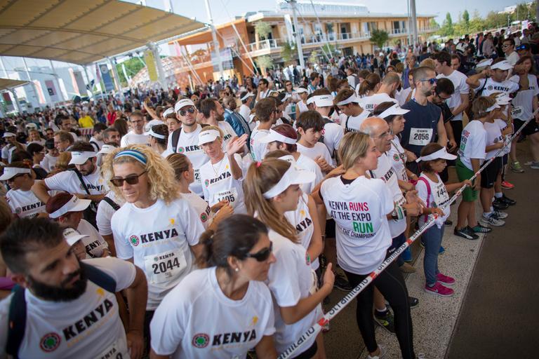 Keywords: kenya italy milan expo 2015 traditional singing dancing song dance race marathon athletes runners run 3km 10km music celebration showcase world coffee nation tourism investment people crowd ITALY, Milan: In a photograph taken by Make It Kenya 10 September 2015, participants young and old wait on the startline of a 3km family fun run outside the Kenya Pavilion as part of Kenyan Week celebrations at Expo Milan 2015, a universal exhibition and platform for the exchange of ideas and shared solutions on the theme of food. A number of events were held in Milan to mark the occasion, incluing the 3km family fun run completed by Hon. Phyllis Kandie, Minister for East Afrian Affairs, Commerce and Tourism (MEAACT) and the Kenya Expo Run With The Champions 10km race in which some of Kenyans top athletes competed against professional and enthusiast runners alike. MANDATORY CREDIT: MAKE IT KENYA PHOTO / STUART PRICE. ITALY, Milan: In a photograph taken by Make It Kenya 10 September 2015, participants young and old wait on the startline of a 3km family fun run outside the Kenya Pavilion as part of Kenyan Week celebrations at Expo Milan 2015, a universal exhibition and platform for the exchange of ideas and shared solutions on the theme of food. A number of events were held in Milan to mark the occasion, incluing the 3km family fun run completed by Hon. Phyllis Kandie, Minister for East Afrian Affairs, Commerce and Tourism (MEAACT) and the Kenya Expo Run With The Champions 10km race in which some of Kenyans top athletes competed against professional and enthusiast runners alike. MANDATORY CREDIT: MAKE IT KENYA PHOTO / STUART PRICE. |