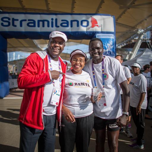 Keywords: kenya italy milan expo 2015 traditional singing dancing song dance race marathon athletes runners run 3km 10km music celebration showcase world coffee nation tourism investment outdoor ITALY, Milan: In a photograph taken by Make It Kenya 10 September 2015, Hon. Phyllis Kandie, Cabinet Secreatray for East Afrian Affairs, Commerce and Tourism (MEAACT) stands with former world champion marathon runner Paul Tergat (right), having just crossed the finish line of a 3km family fun run as part of a number of events held in Milan this week to mark the Kenyan Week celebrations at Expo Milan 2015, a universal exhibition and platform for the exchange of ideas and shared solutions on the theme of food. MANDATORY CREDIT: MAKE IT KENYA PHOTO / STUART PRICE. ITALY, Milan: In a photograph taken by Make It Kenya 10 September 2015, Hon. Phyllis Kandie, Cabinet Secreatray for East Afrian Affairs, Commerce and Tourism (MEAACT) stands with former world champion marathon runner Paul Tergat (right), having just crossed the finish line of a 3km family fun run as part of a number of events held in Milan this week to mark the Kenyan Week celebrations at Expo Milan 2015, a universal exhibition and platform for the exchange of ideas and shared solutions on the theme of food. MANDATORY CREDIT: MAKE IT KENYA PHOTO / STUART PRICE. |
