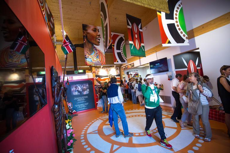 Keywords: kenya italy milan expo 2015 traditional singing dancing song dance race marathon athletes runners run 3km 10km music celebration showcase world coffee nation tourism investment indoor ITALY, Milan: Photograph taken by Make It Kenya 10 September 2015, shows inside the Kenya Pavilion as part of Kenyan Week celebrations at Expo Milan 2015, a universal exhibition and platform for the exchange of ideas and shared solutions on the theme of food. A number of events were held in Milan to mark the occasion, incluing a 3km family fun run completed by Hon. Phyllis Kandie, Minister for East Afrian Affairs, Commerce and Tourism (MEAACT) and the Kenya Expo Run With The Champions 10km race in which some of Kenyans top athletes competed against professional and enthusiast runners alike. MANDATORY CREDIT: MAKE IT KENYA PHOTO / STUART PRICE. ITALY, Milan: Photograph taken by Make It Kenya 10 September 2015, shows inside the Kenya Pavilion as part of Kenyan Week celebrations at Expo Milan 2015, a universal exhibition and platform for the exchange of ideas and shared solutions on the theme of food. A number of events were held in Milan to mark the occasion, incluing a 3km family fun run completed by Hon. Phyllis Kandie, Minister for East Afrian Affairs, Commerce and Tourism (MEAACT) and the Kenya Expo Run With The Champions 10km race in which some of Kenyans top athletes competed against professional and enthusiast runners alike. MANDATORY CREDIT: MAKE IT KENYA PHOTO / STUART PRICE.