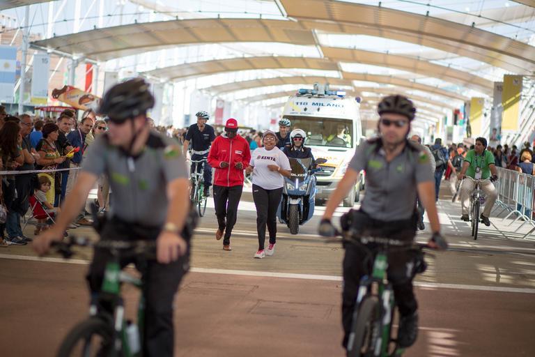 Keywords: kenya italy milan expo 2015 traditional singing dancing song dance race marathon athletes runners run 3km 10km music celebration showcase world coffee nation tourism investment ITALY, Milan: In a photograph taken by Make It Kenya 10 September 2015, Hon. Phyllis Kandie, Minister for East Afrian Affairs, Commerce and Tourism (MEAACT) approaches the finish line of a 3km family fun run as part of a number of events held in Milan this week to mark the Kenyan Week celebrations at Expo Milan 2015, a universal exhibition and platform for the exchange of ideas and shared solutions on the theme of food. MANDATORY CREDIT: MAKE IT KENYA PHOTO / STUART PRICE. ITALY, Milan: In a photograph taken by Make It Kenya 10 September 2015, Hon. Phyllis Kandie, Minister for East Afrian Affairs, Commerce and Tourism (MEAACT) approaches the finish line of a 3km family fun run as part of a number of events held in Milan this week to mark the Kenyan Week celebrations at Expo Milan 2015, a universal exhibition and platform for the exchange of ideas and shared solutions on the theme of food. MANDATORY CREDIT: MAKE IT KENYA PHOTO / STUART PRICE.