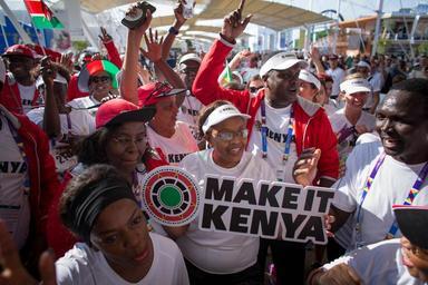 | Keywords: kenya italy milan expo 2015 traditional singing dancing song dance race marathon athletes runners run 3km 10km music celebration showcase world coffee nation tourism investment people outdoor sport team sport ITALY, Milan: In a photograph taken by Make It Kenya 10 September 2015, Hon. Phyllis Kandie, Minister for East Afrian Affairs, Commerce and Tourism (MEAACT) celebrates with fellow Kenyans having just crossed the finish line of a 3km family fun run as part of a number of events held in Milan this week to mark the Kenyan Week celebrations at Expo Milan 2015, a universal exhibition and platform for the exchange of ideas and shared solutions on the theme of food. MANDATORY CREDIT: MAKE IT KENYA PHOTO / STUART PRICE. ITALY, Milan: In a photograph taken by Make It Kenya 10 September 2015, Hon. Phyllis Kandie, Minister for East Afrian Affairs, Commerce and Tourism (MEAACT) celebrates with fellow Kenyans having just crossed the finish line of a 3km family fun run as part of a number of events held in Milan this week to mark the Kenyan Week celebrations at Expo Milan 2015, a universal exhibition and platform for the exchange of ideas and shared solutions on the theme of food. MANDATORY CREDIT: MAKE IT KENYA PHOTO / STUART PRICE. |