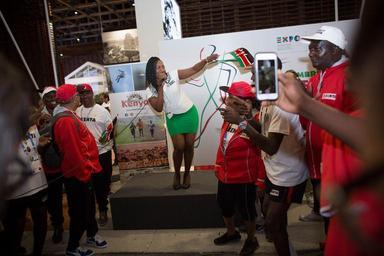 Keywords: kenya italy milan expo 2015 traditional singing dancing song dance race marathon athletes runners run 3km 10km music celebration showcase world coffee nation tourism investment ITALY, Milan: In a photograph taken by Make It Kenya 10 September 2015, Kenyan singer Kavi Pratt performs her song Twende Mbele at the finish line of the Kenya Expo 'Run With The Champions' 10km race held at Expo Milan 2015. Kenyan runner Thomas James Lokomwa won the race with second place Geoffrey Kiprono Ngetich coming in ahead of Silas Muturi Gichovi making a clean Kenyan 1-2-3. The race, along with a family 3km fun-run which took place earlier in the day, was one of a number of events held in Milan this week to mark the Kenyan Week celebrations at Expo Milan 2015, a universal exhibition and platform for the exchange of ideas and shared solutions on the theme of food. MANDATORY CREDIT: MAKE IT KENYA PHOTO / STUART PRICE. ITALY, Milan: In a photograph taken by Make It Kenya 10 September 2015, Kenyan singer Kavi Pratt performs her song Twende Mbele at the finish line of the Kenya Expo 'Run With The Champions' 10km race held at Expo Milan 2015. Kenyan runner Thomas James Lokomwa won the race with second place Geoffrey Kiprono Ngetich coming in ahead of Silas Muturi Gichovi making a clean Kenyan 1-2-3. The race, along with a family 3km fun-run which took place earlier in the day, was one of a number of events held in Milan this week to mark the Kenyan Week celebrations at Expo Milan 2015, a universal exhibition and platform for the exchange of ideas and shared solutions on the theme of food. MANDATORY CREDIT: MAKE IT KENYA PHOTO / STUART PRICE. |