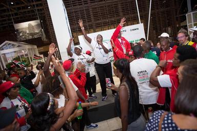 Keywords: kenya italy milan expo 2015 traditional singing dancing song dance race marathon athletes runners run 3km 10km music celebration showcase world coffee nation tourism investment ITALY, Milan: In a photograph taken by Make It Kenya 10 September 2015, Kenyan singer Emmy Kosgei performs and entertains crowds at the finish line of the Kenya Expo 'Run With The Champions' 10km race held at Expo Milan 2015. Kenyan runner Thomas James Lokomwa won the race with second place Geoffrey Kiprono Ngetich coming in ahead of Silas Muturi Gichovi making a clean Kenyan 1-2-3. The race, along with a family 3km fun-run which took place earlier in the day, was one of a number of events held in Milan this week to mark the Kenyan Week celebrations at Expo Milan 2015, a universal exhibition and platform for the exchange of ideas and shared solutions on the theme of food. MANDATORY CREDIT: MAKE IT KENYA PHOTO / STUART PRICE. ITALY, Milan: In a photograph taken by Make It Kenya 10 September 2015, Kenyan singer Emmy Kosgei performs and entertains crowds at the finish line of the Kenya Expo 'Run With The Champions' 10km race held at Expo Milan 2015. Kenyan runner Thomas James Lokomwa won the race with second place Geoffrey Kiprono Ngetich coming in ahead of Silas Muturi Gichovi making a clean Kenyan 1-2-3. The race, along with a family 3km fun-run which took place earlier in the day, was one of a number of events held in Milan this week to mark the Kenyan Week celebrations at Expo Milan 2015, a universal exhibition and platform for the exchange of ideas and shared solutions on the theme of food. MANDATORY CREDIT: MAKE IT KENYA PHOTO / STUART PRICE. |
