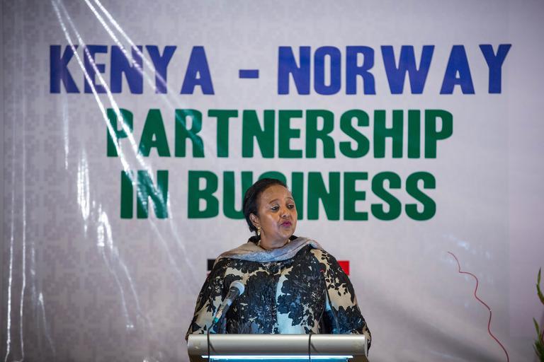 Keywords: norway kenya business partnership nairobi trade investment relations development public private sector ceos companies KENYA, Nairobi: In a photograph taken by Make It Kenya 18 September 2015, Dr. Amina Mohamed, Cabinet Secretary for The Kenyan Ministry of Foreign Affairs and International Trade speaks at the opening of the Kenya-Norway Partnership in Business Seminar at the InterContinental Hotel in the Kenyan capital Nairobi. The seminar saw Norway's Minister of Trade & Industry Ms. Monica Maelend lead a delegation of over 50 Norwegian CEOs and business representatives to Kenya to meet a series of high profile public and private sector companies in a move designed as a major development in Kenya-Norway investment relations. MAKE IT KENYA PHOTO / STUART PRICE. KENYA, Nairobi: In a photograph taken by Make It Kenya 18 September 2015, Dr. Amina Mohamed, Cabinet Secretary for The Kenyan Ministry of Foreign Affairs and International Trade speaks at the opening of the Kenya-Norway Partnership in Business Seminar at the InterContinental Hotel in the Kenyan capital Nairobi. The seminar saw Norway's Minister of Trade & Industry Ms. Monica Maelend lead a delegation of over 50 Norwegian CEOs and business representatives to Kenya to meet a series of high profile public and private sector companies in a move designed as a major development in Kenya-Norway investment relations. MAKE IT KENYA PHOTO / STUART PRICE.