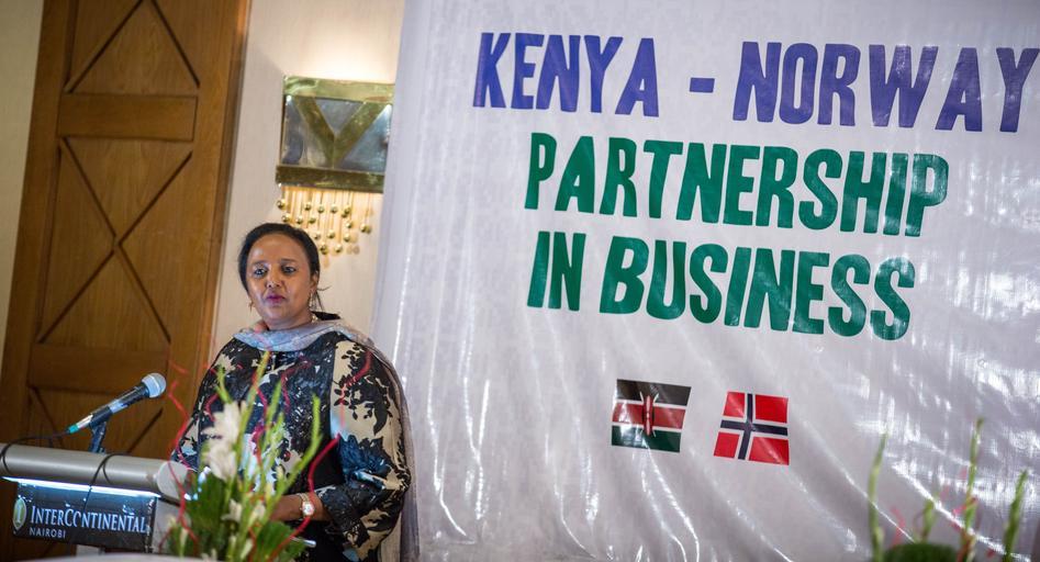 | Keywords: norway kenya business partnership nairobi trade investment relations development public private sector ceos companies KENYA, Nairobi: In a photograph taken by Make It Kenya 18 September 2015, Dr. Amina Mohamed, Cabinet Secretary for The Kenyan Ministry of Foreign Affairs and International Trade speaks at the opening of the Kenya-Norway Partnership in Business Seminar at the InterContinental Hotel in the Kenyan capital Nairobi. The seminar saw Norway's Minister of Trade & Industry Ms. Monica Maelend lead a delegation of over 50 Norwegian CEOs and business representatives to Kenya to meet a series of high profile public and private sector companies in a move designed as a major development in Kenya-Norway investment relations. MAKE IT KENYA PHOTO / STUART PRICE. KENYA, Nairobi: In a photograph taken by Make It Kenya 18 September 2015, Dr. Amina Mohamed, Cabinet Secretary for The Kenyan Ministry of Foreign Affairs and International Trade speaks at the opening of the Kenya-Norway Partnership in Business Seminar at the InterContinental Hotel in the Kenyan capital Nairobi. The seminar saw Norway's Minister of Trade & Industry Ms. Monica Maelend lead a delegation of over 50 Norwegian CEOs and business representatives to Kenya to meet a series of high profile public and private sector companies in a move designed as a major development in Kenya-Norway investment relations. MAKE IT KENYA PHOTO / STUART PRICE. |
