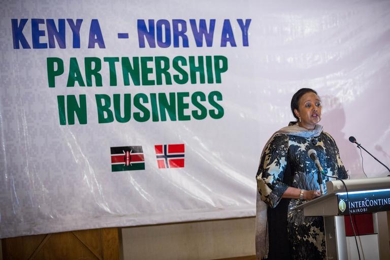 Keywords: norway kenya business partnership nairobi trade investment relations development public private sector ceos companies KENYA, Nairobi: In a photograph taken by Make It Kenya 18 September 2015, Dr. Amina Mohamed, Cabinet Secretary for The Kenyan Ministry of Foreign Affairs and International Trade speaks at the opening of the Kenya-Norway Partnership in Business Seminar at the InterContinental Hotel in the Kenyan capital Nairobi. The seminar saw Norway's Minister of Trade & Industry Ms. Monica Maelend lead a delegation of over 50 Norwegian CEOs and business representatives to Kenya to meet a series of high profile public and private sector companies in a move designed as a major development in Kenya-Norway investment relations. MAKE IT KENYA PHOTO / STUART PRICE. KENYA, Nairobi: In a photograph taken by Make It Kenya 18 September 2015, Dr. Amina Mohamed, Cabinet Secretary for The Kenyan Ministry of Foreign Affairs and International Trade speaks at the opening of the Kenya-Norway Partnership in Business Seminar at the InterContinental Hotel in the Kenyan capital Nairobi. The seminar saw Norway's Minister of Trade & Industry Ms. Monica Maelend lead a delegation of over 50 Norwegian CEOs and business representatives to Kenya to meet a series of high profile public and private sector companies in a move designed as a major development in Kenya-Norway investment relations. MAKE IT KENYA PHOTO / STUART PRICE.