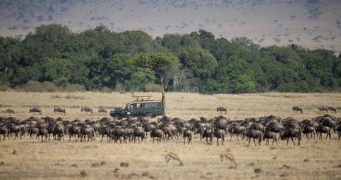 | Keywords: outdoor KENYA, Masai Mara: In a photograph taken by Make It Kenya 29 September 2015, a safari vehicle observes a herd of wildesbeest on the savannah near the Mara River in Kenya's world famous Masai Mara National Reserve. Every year, hundreds of thousands of wildebeest, zebra and other ungulate animals migrate between Tanzania's Serengeti and Kenya's Masai Mara in a year-long, continuous cycle, which sees the animals travel thousands of kilometres and is known as one of the seven natural wonders of the world, and is a major draw for wildlife enthusiasts and tourists from around the world. MANDATORY CREDIT: MAKE IT KENYA PHOTO / STUART PRICE. KENYA, Masai Mara: In a photograph taken by Make It Kenya 29 September 2015, a safari vehicle observes a herd of wildesbeest on the savannah near the Mara River in Kenya's world famous Masai Mara National Reserve. Every year, hundreds of thousands of wildebeest, zebra and other ungulate animals migrate between Tanzania's Serengeti and Kenya's Masai Mara in a year-long, continuous cycle, which sees the animals travel thousands of kilometres and is known as one of the seven natural wonders of the world, and is a major draw for wildlife enthusiasts and tourists from around the world. MANDATORY CREDIT: MAKE IT KENYA PHOTO / STUART PRICE. |