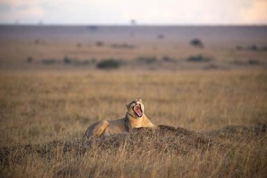 | Keywords: outdoor animal KENYA, Masai Mara: In a photograph taken by Make It Kenya 29 September 2015, a lioness from a group of lions known as the Marsh Pride, made famous by wildlife film-makers Jonathan and Angela Scott in the BBC natural history serialisation Big Cat Diary, yawns while sitting on top of an earth mound late in the afternoon in Kenya's Masai Mara National Reserve. During the months of July through to October, one of nature's greatest events takes place in the Mara when hundreds of thousands of wildebeest, zebra and other ungulates migrate northwards from Tanzania's Serengeti in search of fresh pasture and grazing, before turning and heading south again in a journey that covers thousands of kilometres and is known as one of the seven natural wonders of the world, making it a major draw for wildlife enthusiasts and tourists from around the globe. MANDATORY CREDIT: MAKE IT KENYA PHOTO / STUART PRICE. KENYA, Masai Mara: In a photograph taken by Make It Kenya 29 September 2015, a lioness from a group of lions known as the Marsh Pride, made famous by wildlife film-makers Jonathan and Angela Scott in the BBC natural history serialisation Big Cat Diary, yawns while sitting on top of an earth mound late in the afternoon in Kenya's Masai Mara National Reserve. During the months of July through to October, one of nature's greatest events takes place in the Mara when hundreds of thousands of wildebeest, zebra and other ungulates migrate northwards from Tanzania's Serengeti in search of fresh pasture and grazing, before turning and heading south again in a journey that covers thousands of kilometres and is known as one of the seven natural wonders of the world, making it a major draw for wildlife enthusiasts and tourists from around the globe. MANDATORY CREDIT: MAKE IT KENYA PHOTO / STUART PRICE.  |