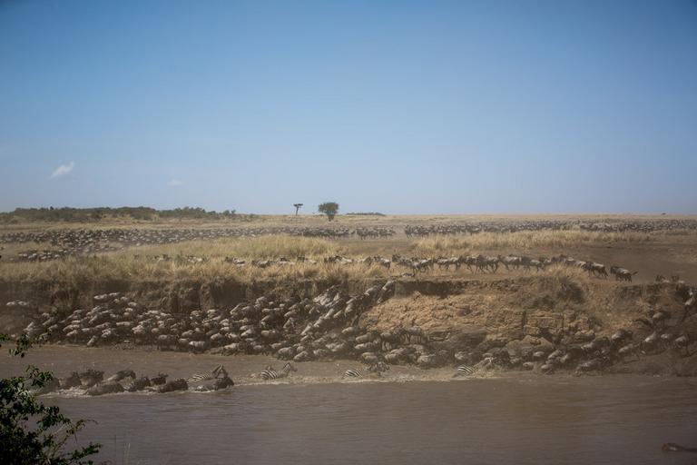 | Keywords: outdoor KENYA, Masai Mara: In a photograph taken by Make It Kenya 29 September 2015, a large group of wildebeest cross the Mara River in Kenya's world famous Masai Mara National Reserve. Every year, hundreds of thousands of wildebeest, zebra and other ungulate animals migrate between Tanzania's Serengeti and Kenya's Masai Mara in a year-long, continuous cycle, which sees the animals travel thousands of kilometres and is known as one of the seven natural wonders of the world, and is a major draw for wildlife enthusiasts and tourists from around the world. MANDATORY CREDIT: MAKE IT KENYA PHOTO / STUART PRICE. KENYA, Masai Mara: In a photograph taken by Make It Kenya 29 September 2015, a large group of wildebeest cross the Mara River in Kenya's world famous Masai Mara National Reserve. Every year, hundreds of thousands of wildebeest, zebra and other ungulate animals migrate between Tanzania's Serengeti and Kenya's Masai Mara in a year-long, continuous cycle, which sees the animals travel thousands of kilometres and is known as one of the seven natural wonders of the world, and is a major draw for wildlife enthusiasts and tourists from around the world. MANDATORY CREDIT: MAKE IT KENYA PHOTO / STUART PRICE.  |