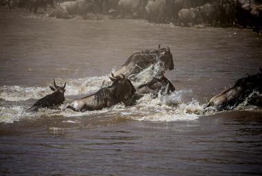 | Keywords: outdoor animal KENYA, Masai Mara: In a photograph taken by Make It Kenya 29 September 2015, a large group of wildebeest cross the Mara River in Kenya's world famous Masai Mara National Reserve. Every year, hundreds of thousands of wildebeest, zebra and other ungulate animals migrate between Tanzania's Serengeti and Kenya's Masai Mara in a year-long, continuous cycle, which sees the animals travel thousands of kilometres and is known as one of the seven natural wonders of the world, and is a major draw for wildlife enthusiasts and tourists from around the world. MANDATORY CREDIT: MAKE IT KENYA PHOTO / STUART PRICE. KENYA, Masai Mara: In a photograph taken by Make It Kenya 29 September 2015, a large group of wildebeest cross the Mara River in Kenya's world famous Masai Mara National Reserve. Every year, hundreds of thousands of wildebeest, zebra and other ungulate animals migrate between Tanzania's Serengeti and Kenya's Masai Mara in a year-long, continuous cycle, which sees the animals travel thousands of kilometres and is known as one of the seven natural wonders of the world, and is a major draw for wildlife enthusiasts and tourists from around the world. MANDATORY CREDIT: MAKE IT KENYA PHOTO / STUART PRICE.  |