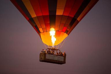 Keywords: KENYA, Masai Mara: In a photograph taken by Make It Kenya 30 September 2015, gas is flared as a Governor's Balloon Safari takes off from Little Governor's Camp for a flight over the Masai Mara National Reserve. Seeing the Mara from the air requires an early start in order to be airborne for the sunrise, but offers tourists visiting the famous wildlife reserve a unique and panoramic way to view one of Kenya's most famous natural attractions from the basket of a hot air balloon. MANDATORY CREDIT: MAKE IT KENYA PHOTO / STUART PRICE. KENYA, Masai Mara: In a photograph taken by Make It Kenya 30 September 2015, gas is flared as a Governor's Balloon Safari takes off from Little Governor's Camp for a flight over the Masai Mara National Reserve. Seeing the Mara from the air requires an early start in order to be airborne for the sunrise, but offers tourists visiting the famous wildlife reserve a unique and panoramic way to view one of Kenya's most famous natural attractions from the basket of a hot air balloon. MANDATORY CREDIT: MAKE IT KENYA PHOTO / STUART PRICE.