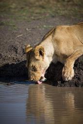 Keywords: outdoor carnivore animal pet mammal KENYA, Masai Mara: In a photograph taken by Make It Kenya 30 September 2015, a female lioness of the Marsh Pride of lions takes a drink in the early morning sunlight on the savannah of Kenya's Masai Mara National Reserve. During the months of July through to October, one of nature's greatest events takes place in the Mara when hundreds of thousands of wildebeest, zebra and other ungulates migrate northwards from Tanzania's Serengeti in search of fresh pasture and grazing, before turning and heading south again in a journey that covers thousands of kilometres and is known as one of the seven natural wonders of the world, making it a major draw for wildlife enthusiasts and tourists from around the globe. MANDATORY CREDIT: MAKE IT KENYA PHOTO / STUART PRICE. KENYA, Masai Mara: In a photograph taken by Make It Kenya 30 September 2015, a female lioness of the Marsh Pride of lions takes a drink in the early morning sunlight on the savannah of Kenya's Masai Mara National Reserve. During the months of July through to October, one of nature's greatest events takes place in the Mara when hundreds of thousands of wildebeest, zebra and other ungulates migrate northwards from Tanzania's Serengeti in search of fresh pasture and grazing, before turning and heading south again in a journey that covers thousands of kilometres and is known as one of the seven natural wonders of the world, making it a major draw for wildlife enthusiasts and tourists from around the globe. MANDATORY CREDIT: MAKE IT KENYA PHOTO / STUART PRICE.