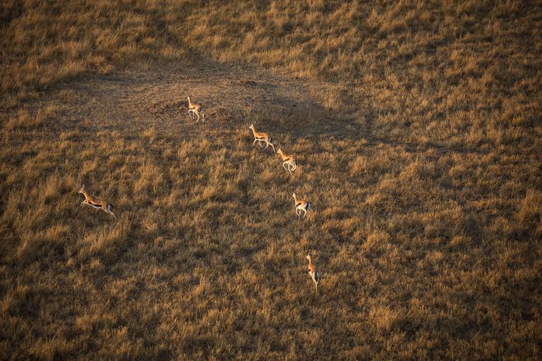| Keywords: KENYA, Masai Mara: In a photograph taken by Make It Kenya 02 October 2015, Thompson's gazelle are seen on the savannah from above as a Governor's Balloon Safari floats along the course of the Mara River over the Masai Mara National Reserve. Seeing the Mara from the air requires an early start in order to be airborne for the sunrise, but offers tourists visiting the famous wildlife reserve a unique and panoramic way to view one of Kenya's most famous natural attractions from the basket of a hot air balloon. MANDATORY CREDIT: MAKE IT KENYA PHOTO / STUART PRICE. KENYA, Masai Mara: In a photograph taken by Make It Kenya 02 October 2015, Thompson's gazelle are seen on the savannah from above as a Governor's Balloon Safari floats along the course of the Mara River over the Masai Mara National Reserve. Seeing the Mara from the air requires an early start in order to be airborne for the sunrise, but offers tourists visiting the famous wildlife reserve a unique and panoramic way to view one of Kenya's most famous natural attractions from the basket of a hot air balloon. MANDATORY CREDIT: MAKE IT KENYA PHOTO / STUART PRICE. |