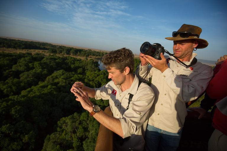 | Keywords: outdoor KENYA, Masai Mara: In a photograph taken by Make It Kenya 02 October 2015, Andre Van Kets (left) and Carel Verheof, Co-founders of the website discoverafrica.com/herdtracker, and resource that tracks the annual wildebeest migration in Kenya's Masai Nara National Reserve and Tanzania's Serengeti, live-streams video over the internet via the Twitter application Periscope as a Governor's Balloon Safari floats along the course of the Mara River. Seeing the Mara from the air requires an early start in order to be airborne for the sunrise, but offers tourists visiting the famous wildlife reserve a unique and panoramic way to view one of Kenya's most famous natural attractions from the basket of a hot air balloon. MANDATORY CREDIT: MAKE IT KENYA PHOTO / STUART PRICE. KENYA, Masai Mara: In a photograph taken by Make It Kenya 02 October 2015, Andre Van Kets (left) and Carel Verheof, Co-founders of the website discoverafrica.com/herdtracker, and resource that tracks the annual wildebeest migration in Kenya's Masai Nara National Reserve and Tanzania's Serengeti, live-streams video over the internet via the Twitter application Periscope as a Governor's Balloon Safari floats along the course of the Mara River. Seeing the Mara from the air requires an early start in order to be airborne for the sunrise, but offers tourists visiting the famous wildlife reserve a unique and panoramic way to view one of Kenya's most famous natural attractions from the basket of a hot air balloon. MANDATORY CREDIT: MAKE IT KENYA PHOTO / STUART PRICE. |