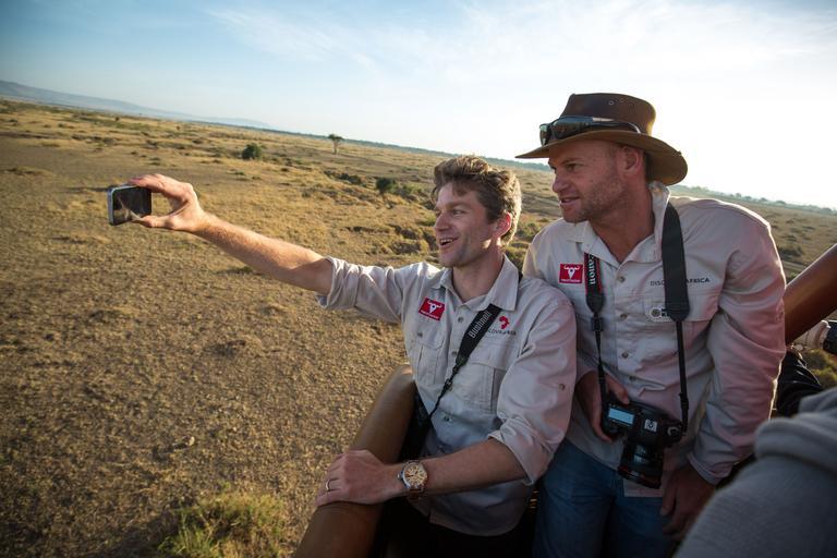 | Keywords: KENYA, Masai Mara: In a photograph taken by Make It Kenya 02 October 2015, Andre Van Kets (left) and Carel Verheof, Co-founders of the website discoverafrica.com/herdtracker, and resource that tracks the annual wildebeest migration in Kenya's Masai Nara National Reserve and Tanzania's Serengeti, live-streams video over the internet via the Twitter application Periscope as a Governor's Balloon Safari floats along the course of the Mara River. Seeing the Mara from the air requires an early start in order to be airborne for the sunrise, but offers tourists visiting the famous wildlife reserve a unique and panoramic way to view one of Kenya's most famous natural attractions from the basket of a hot air balloon. MANDATORY CREDIT: MAKE IT KENYA PHOTO / STUART PRICE. KENYA, Masai Mara: In a photograph taken by Make It Kenya 02 October 2015, Andre Van Kets (left) and Carel Verheof, Co-founders of the website discoverafrica.com/herdtracker, and resource that tracks the annual wildebeest migration in Kenya's Masai Nara National Reserve and Tanzania's Serengeti, live-streams video over the internet via the Twitter application Periscope as a Governor's Balloon Safari floats along the course of the Mara River. Seeing the Mara from the air requires an early start in order to be airborne for the sunrise, but offers tourists visiting the famous wildlife reserve a unique and panoramic way to view one of Kenya's most famous natural attractions from the basket of a hot air balloon. MANDATORY CREDIT: MAKE IT KENYA PHOTO / STUART PRICE. |