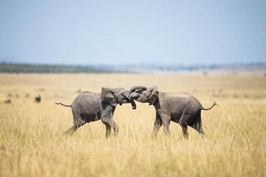 Keywords: outdoor animal KENYA, Masai Mara: In a photograph taken by Make It Kenya 03 October 2015, two young elephants spar with each other on the savannah in the Mara Triangle, part of Kenya's wider Masai Mara ecosystem. During the months of July through to October, one of nature's greatest events takes place in the Mara when hundreds of thousands of wildebeest, zebra and other ungulates migrate northwards from Tanzania's Serengeti in search of fresh pasture and grazing, before turning and heading south again in a journey that covers thousands of kilometres and is known as one of the seven natural wonders of the world, making it a major draw for wildlife enthusiasts and tourists from around the globe. MANDATORY CREDIT: MAKE IT KENYA PHOTO / STUART PRICE. KENYA, Masai Mara: In a photograph taken by Make It Kenya 03 October 2015, two young elephants spar with each other on the savannah in the Mara Triangle, part of Kenya's wider Masai Mara ecosystem. During the months of July through to October, one of nature's greatest events takes place in the Mara when hundreds of thousands of wildebeest, zebra and other ungulates migrate northwards from Tanzania's Serengeti in search of fresh pasture and grazing, before turning and heading south again in a journey that covers thousands of kilometres and is known as one of the seven natural wonders of the world, making it a major draw for wildlife enthusiasts and tourists from around the globe. MANDATORY CREDIT: MAKE IT KENYA PHOTO / STUART PRICE. |