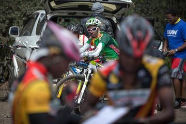 Keywords: KENYA, Naro Moru: In a photograph taken by Make it Kenya 31 October, cyclists prepare ahead of the start of the Naro Moru Trail Trial race, a pre-cursor event to the inaugural Mt. Kenya Epik Challenge which will take place from the 22-28 November. The Trial Trail, organised by Naro Moru River Lodge, hosted over 30 cyclists including men, women and children, and saw the participants covering 35km along an off-road course around the surrounding area. The Epik Challenge, which was founded by former world marathon champion Douglas Wakihuri and renown cyclist David Kinja, will begin at Naro Moru and traverse through the counties of Laikipia, Kirinyaga, Nyeri, Meru and Embu, and see participants cycle through the stunning foothills of Mt. Kenya, through bush, wilderness, wildlife and villages, covering almost 500km in six days. MAKE IT KENYA PHOTO / STUART PRICE. KENYA, Naro Moru: In a photograph taken by Make it Kenya 31 October, cyclists prepare ahead of the start of the Naro Moru Trail Trial race, a pre-cursor event to the inaugural Mt. Kenya Epik Challenge which will take place from the 22-28 November. The Trial Trail, organised by Naro Moru River Lodge, hosted over 30 cyclists including men, women and children, and saw the participants covering 35km along an off-road course around the surrounding area. The Epik Challenge, which was founded by former world marathon champion Douglas Wakihuri and renown cyclist David Kinja, will begin at Naro Moru and traverse through the counties of Laikipia, Kirinyaga, Nyeri, Meru and Embu, and see participants cycle through the stunning foothills of Mt. Kenya, through bush, wilderness, wildlife and villages, covering almost 500km in six days. MAKE IT KENYA PHOTO / STUART PRICE.