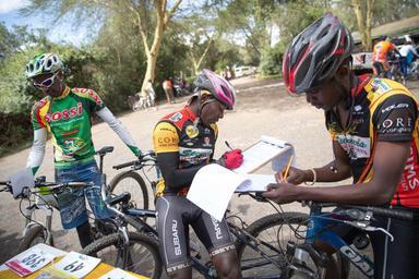 Keywords: vehicle outdoor motorcycle bike sport KENYA, Naro Moru: In a photograph taken by Make it Kenya 31 October, cyclists register ahead of the start of the Naro Moru Trail Trial race, a pre-cursor event to the inaugural Mt. Kenya Epik Challenge which will take place from the 22-28 November. The Trial Trail, organised by Naro Moru River Lodge, hosted over 30 cyclists including men, women and children, and saw the participants covering 35km along an off-road course around the surrounding area. The Epik Challenge, which was founded by former world marathon champion Douglas Wakihuri and renown cyclist David Kinja, will begin at Naro Moru and traverse through the counties of Laikipia, Kirinyaga, Nyeri, Meru and Embu, and see participants cycle through the stunning foothills of Mt. Kenya, through bush, wilderness, wildlife and villages, covering almost 500km in six days. MAKE IT KENYA PHOTO / STUART PRICE. KENYA, Naro Moru: In a photograph taken by Make it Kenya 31 October, cyclists register ahead of the start of the Naro Moru Trail Trial race, a pre-cursor event to the inaugural Mt. Kenya Epik Challenge which will take place from the 22-28 November. The Trial Trail, organised by Naro Moru River Lodge, hosted over 30 cyclists including men, women and children, and saw the participants covering 35km along an off-road course around the surrounding area. The Epik Challenge, which was founded by former world marathon champion Douglas Wakihuri and renown cyclist David Kinja, will begin at Naro Moru and traverse through the counties of Laikipia, Kirinyaga, Nyeri, Meru and Embu, and see participants cycle through the stunning foothills of Mt. Kenya, through bush, wilderness, wildlife and villages, covering almost 500km in six days. MAKE IT KENYA PHOTO / STUART PRICE. |