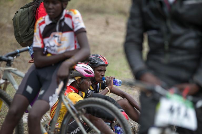 Keywords: vehicle motorcycle bike outdoor sport KENYA, Naro Moru: In a photograph taken by Make it Kenya 31 October, particpants rest having crossed the finish line of the Naro Moru Trail Trial race, a pre-cursor event to the inaugural Mt. Kenya Epik Challenge which will take place from the 22-28 November. The Trial Trail, organised by Naro Moru River Lodge, hosted over 30 cyclists including men, women and children, and saw the participants covering 35km along an off-road course around the surrounding area. The Epik Challenge, which was founded by former world marathon champion Douglas Wakihuri and renown cyclist David Kinja, will begin at Naro Moru and traverse through the counties of Laikipia, Kirinyaga, Nyeri, Meru and Embu, and see participants cycle through the stunning foothills of Mt. Kenya, through bush, wilderness, wildlife and villages, covering almost 500km in six days. MAKE IT KENYA PHOTO / STUART PRICE. KENYA, Naro Moru: In a photograph taken by Make it Kenya 31 October, particpants rest having crossed the finish line of the Naro Moru Trail Trial race, a pre-cursor event to the inaugural Mt. Kenya Epik Challenge which will take place from the 22-28 November. The Trial Trail, organised by Naro Moru River Lodge, hosted over 30 cyclists including men, women and children, and saw the participants covering 35km along an off-road course around the surrounding area. The Epik Challenge, which was founded by former world marathon champion Douglas Wakihuri and renown cyclist David Kinja, will begin at Naro Moru and traverse through the counties of Laikipia, Kirinyaga, Nyeri, Meru and Embu, and see participants cycle through the stunning foothills of Mt. Kenya, through bush, wilderness, wildlife and villages, covering almost 500km in six days. MAKE IT KENYA PHOTO / STUART PRICE. |