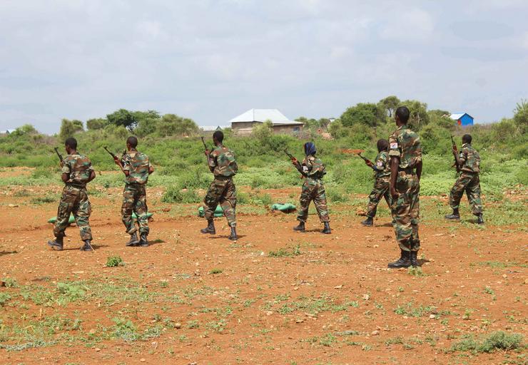 | Keywords: outdoor Soldiers of the Interim South West Administration (ISWA) demonstrate in a firing exercise to mark the completion of training in Baidoa, Somalia on November 20, 2015. A total of 200 ISWA paramilitary forces completed the training that was conducted by the African Union Mission in Somalia (AMISOM) . AMISOM Photo / Sabiir Olad Soldiers of the Interim South West Administration (ISWA) demonstrate in a firing exercise to mark the completion of training in Baidoa, Somalia on November 20, 2015. A total of 200 ISWA paramilitary forces completed the training that was conducted by the African Union Mission in Somalia (AMISOM) . AMISOM Photo / Sabiir Olad |