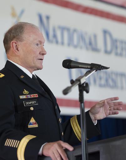 Keywords: 2015 NDU Graduation 150618-D-KC128-153.jpg en Chairman of the Joint Chiefs of Staff Gen Martin E Dempsey delivers the commencement address at the 2015 graduation of National Defense University's College of International Security Affairs National War College Information Resources Management College and Dwight D Eisenhower School for National Security and Resource Strategy schools on Fort Lesley J McNair Washington D C June 18 2015 NDU is dedicated to being the premier national security institution focused on advanced joint education leader development and scholarship DoD Photo by Mass Communication Specialist 1st Class Daniel Hinton/released 2015-06-18 Petty Officer 1st Class Daniel Hinton https //www dvidshub net/image/2011325 150618-D-KC128-153 2015-06-18 14 18 WASHINGTON D C DC US PD-USGov Martin E Dempsey in 2015 Fort Lesley J McNair Images from DoD uploaded by Fæ |