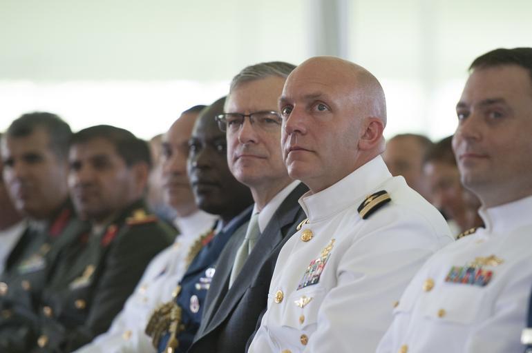 Keywords: 2015 NDU Graduation 150618-D-KC128-193.jpg en Prospective graduates listen as Chairman of the Joint Chiefs of Staff Gen Martin E Dempsey delivers the commencement address at the 2015 graduation of National Defense University's College of International Security Affairs National War College Information Resources Management College and Dwight D Eisenhower School for National Security and Resource Strategy schools on Fort Lesley J McNair Washington D C June 18 2015 NDU is dedicated to being the premier national security institution focused on advanced joint education leader development and scholarship DoD Photo by Mass Communication Specialist 1st Class Daniel Hinton/released 2015-06-18 Petty Officer 1st Class Daniel Hinton https //www dvidshub net/image/2011350 150618-D-KC128-193 2015-06-18 14 21 WASHINGTON D C DC US PD-USGov Martin E Dempsey in 2015 Fort Lesley J McNair Images from DoD uploaded by Fæ |