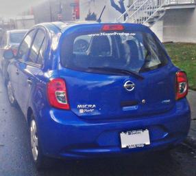 Keywords: 2015 Nissan Micra -- Rear.jpg English 2015 Nissan Micra photographed in Montreal Quebec Canada <br> Français Ma photo d'un Nissan Micra de 2015 à Montréal Québec Canada Own 2015-11-01 Bull-Doser English All Rights Released <br>Français Tous droits libérées Nissan Micra K13 |