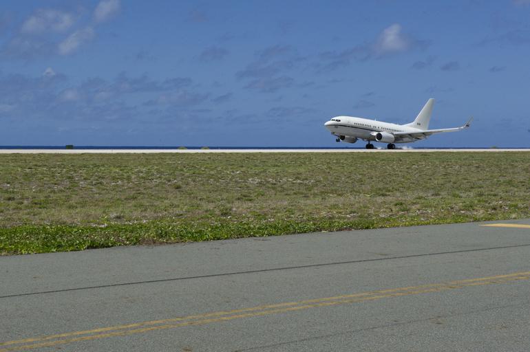 | Keywords: usaf u.s. air force usairforce pacaf pacom wake island wakeisland jber joint base elmendorf-richardson jointbaseelmendorfrichardson prsc 611th asus 611thasus world war ii worldwarii wwii 75th anniversary 75thanniversary battle of wake island battleofwakeisland outdoor A U.S. Navy C-40 Clipper logistics aircraft lands at Wake Island Airfield June 3. The C-40A Clipper is a military version of the Boeing 737-700C; this particular aircraft serves as a "rotator" ferrying military personnel and their families between Pacific duty stations and the mainland U.S. Wake Island, "Where America's Day Really Begins," is an American possession in the middle Pacific within the Micronesia subregion, 2300 miles west of Hawaii and 2000 miles southeast of Tokyo. The coral atoll comprises three islands and roughly 2.8 square miles of dry land. In recognition of its importance during WWII in the Pacific and to thousands of species of sea birds, fish, and other oceanic flaura and fauna today, Wake Island is designated as both a National Historic Landmark and part of the Pacific Remote Islands Marine National Monument. A U.S. Navy C-40 Clipper logistics aircraft lands at Wake Island Airfield June 3. The C-40A Clipper is a military version of the Boeing 737-700C; this particular aircraft serves as a "rotator" ferrying military personnel and their families between Pacific duty stations and the mainland U.S. Wake Island, "Where America's Day Really Begins," is an American possession in the middle Pacific within the Micronesia subregion, 2300 miles west of Hawaii and 2000 miles southeast of Tokyo. The coral atoll comprises three islands and roughly 2.8 square miles of dry land. In recognition of its importance during WWII in the Pacific and to thousands of species of sea birds, fish, and other oceanic flaura and fauna today, Wake Island is designated as both a National Historic Landmark and part of the Pacific Remote Islands Marine National Monument. |