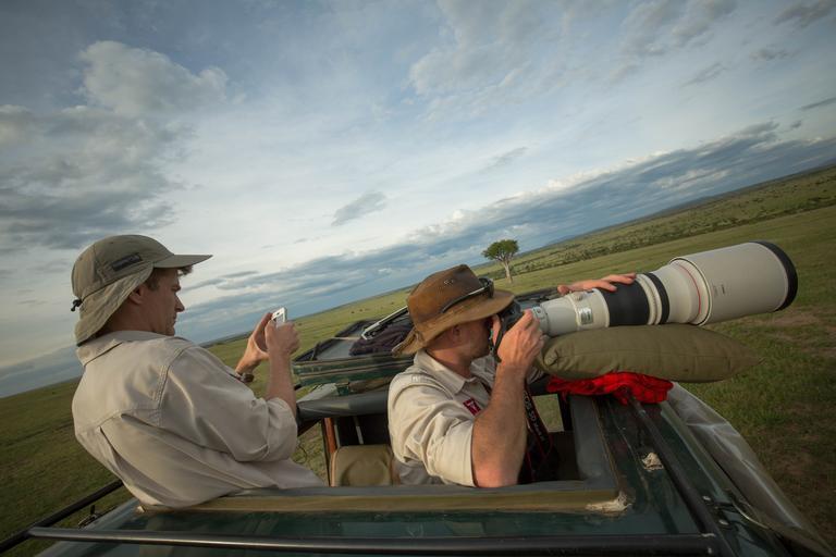 | Keywords: outdoor KENYA, Masai Mara: In a photpgraph taken by Make It Kenya 07 January 2016, Andre Van Kets (left) and Carel Verhoef, creators of the website HerdTracker, an online resource which tracks and documents east Africa's great wildebeest migration, prepare to stream a live broadcast on the Periscope application to viewers around the world of wildlife in the Olare Motorgi Conservancy bordering tha Masai Mara National Reserve in Kenya. The country’s famous wildlife is being showcased with two world firsts in a series of live web broadcasts using new state-of–the-art technology. #KenyaLive enables people to witness the excitement of a night safari in the Mara – as well as Kenya’s coastal underwater treasures - as the action happens in real time. Building on the success of #MaraLive - the world’s first live web broadcast of the great wildebeest migration - Make It Kenya has again partnered with HerdTracker to use a combination of the most innovative filming technology, and Twitter’s Periscope app, to give people around the world unprecedented access to some of the most exciting and rare animal behaviours, with 50 live broadcasts over 11 days. MANDATORY CREDIT: MAKE IT KENYA PHOTO / STUART PRICE. KENYA, Masai Mara: In a photpgraph taken by Make It Kenya 07 January 2016, Andre Van Kets (left) and Carel Verhoef, creators of the website HerdTracker, an online resource which tracks and documents east Africa's great wildebeest migration, prepare to stream a live broadcast on the Periscope application to viewers around the world of wildlife in the Olare Motorgi Conservancy bordering tha Masai Mara National Reserve in Kenya. The country’s famous wildlife is being showcased with two world firsts in a series of live web broadcasts using new state-of–the-art technology. #KenyaLive enables people to witness the excitement of a night safari in the Mara – as well as Kenya’s coastal underwater treasures - as the action happens in real time. Building on the success of #MaraLive - the world’s first live web broadcast of the great wildebeest migration - Make It Kenya has again partnered with HerdTracker to use a combination of the most innovative filming technology, and Twitter’s Periscope app, to give people around the world unprecedented access to some of the most exciting and rare animal behaviours, with 50 live broadcasts over 11 days. MANDATORY CREDIT: MAKE IT KENYA PHOTO / STUART PRICE. |