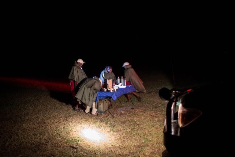 | Keywords: KENYA, Masai Mara: In a photograph taken by Make It Kenya 09 January 2016, guides from Asilia Africa Camp, prepare a bush-dinner during a night-time game drive in Naboisho Conservancy bordering the Masai Mara National Reserve in Kenya. The country’s famous wildlife is being showcased with two world firsts in a series of live web broadcasts using new state-of–the-art technology. #KenyaLive enables people to witness the excitement of a night safari in the Mara – as well as Kenya’s coastal underwater treasures - as the action happens in real time. Building on the success of #MaraLive - the world’s first live web broadcast of the great wildebeest migration - Make It Kenya has again partnered with HerdTracker to use a combination of the most innovative filming technology, and Twitter’s Periscope app, to give people around the world unprecedented access to some of the most exciting and rare animal behaviours, with 50 live broadcasts over 11 days. MANDATORY CREDIT: MAKE IT KENYA PHOTO / STUART PRICE. KENYA, Masai Mara: In a photograph taken by Make It Kenya 09 January 2016, guides from Asilia Africa Camp, prepare a bush-dinner during a night-time game drive in Naboisho Conservancy bordering the Masai Mara National Reserve in Kenya. The country’s famous wildlife is being showcased with two world firsts in a series of live web broadcasts using new state-of–the-art technology. #KenyaLive enables people to witness the excitement of a night safari in the Mara – as well as Kenya’s coastal underwater treasures - as the action happens in real time. Building on the success of #MaraLive - the world’s first live web broadcast of the great wildebeest migration - Make It Kenya has again partnered with HerdTracker to use a combination of the most innovative filming technology, and Twitter’s Periscope app, to give people around the world unprecedented access to some of the most exciting and rare animal behaviours, with 50 live broadcasts over 11 days. MANDATORY CREDIT: MAKE IT KENYA PHOTO / STUART PRICE. |