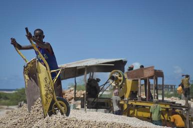 | Keywords: outdoor Working under a hot sun and doing hard physical labor, the locally owned and operated quarries around Mogadishu, Somalia, is physically demanding work for those who do it. AMISOM Photo / Tobin Jones Working under a hot sun and doing hard physical labor, the locally owned and operated quarries around Mogadishu, Somalia, is physically demanding work for those who do it. AMISOM Photo / Tobin Jones  Working under a hot sun and doing hard physical labor, the locally owned and operated quarries around Mogadishu, Somalia, is physically demanding work for those who do it. AMISOM Photo / Tobin Jones 2016 04 10 Stone Quarry-8 (26488253471).jpg  Working under a hot sun and doing hard physical labor the locally owned and operated quarries around Mogadishu Somalia is physically demanding work for those who do it AMISOM Photo / Tobin Jones<br/> Personality rights https //www flickr com/photos/au_unistphotostream/26488253471/ 2016_04_10_Stone_Quarry-8 2016-04-10 10 06 https //www flickr com/people/61765479 N08 AMISOM Public Information cc-zero AMISOM Public Information https //flickr com/photos/61765479 N08/26488253471 2016-05-19 20 34 26 cc-zero Photographs by the African Union Mission to Somalia Uncategorized 2016 October 23  |