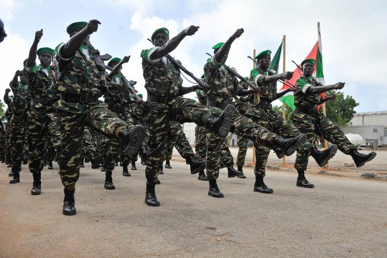 | Keywords: people outdoor Burundi soldiers serving under the African Union Mission in Somalia (AMISOM), march in a parade during a medal awards ceremony at the former Somali Military Academy in Mogadishu. A total of 828 soldiers got medals at the end of their deployment to Somalia on May 28, 2016. AMISOM Photo/ Omar Abdisalan Burundi soldiers serving under the African Union Mission in Somalia (AMISOM), march in a parade during a medal awards ceremony at the former Somali Military Academy in Mogadishu. A total of 828 soldiers got medals at the end of their deployment to Somalia on May 28, 2016. AMISOM Photo/ Omar Abdisalan |