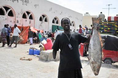 Keywords: outdoor A disabled man holds a fish in Hamarweyne market in Mogadishu, Somalia on July 04, 2016 ahead of Eid el-Fitr celebrations. AMISOM Photo / Ilyas Ahmed A disabled man holds a fish in Hamarweyne market in Mogadishu, Somalia on July 04, 2016 ahead of Eid el-Fitr celebrations. AMISOM Photo / Ilyas Ahmed |