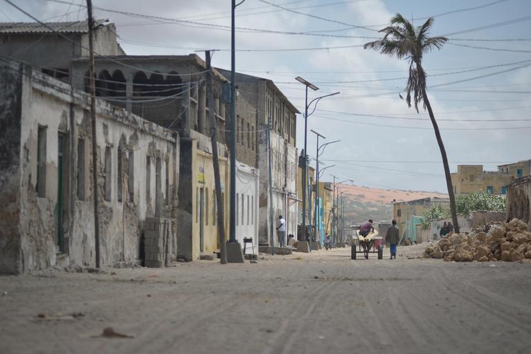 Keywords: outdoor road Two men walk down the street with a donkey cart loaded with supplies in Barawe, Somalia, on August 23, 2016. Barawe, formerly a stronhold of the terrorist group al Shabab, was captured from the group nearly two years ago by the African Union Mission in Somalia and has since been in government hands. AMISOM photo / Tobin Jones Two men walk down the street with a donkey cart loaded with supplies in Barawe, Somalia, on August 23, 2016. Barawe, formerly a stronhold of the terrorist group al Shabab, was captured from the group nearly two years ago by the African Union Mission in Somalia and has since been in government hands. AMISOM photo / Tobin Jones |