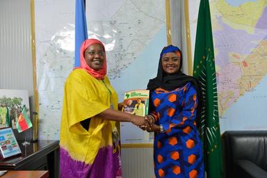 | Keywords: The President of the Pan African Youth Union,Francine Furaha Muyumba, shakes hands with the Deputy Special Representative of the Chairperson of the African Union Commission (DSRCC), for Somalia, Hon. Lydia Wanyoto, in Mogadishu, Somalia on November 9, 2016. AMISOM Photo / Omar Abdisalan The President of the Pan African Youth Union,Francine Furaha Muyumba, shakes hands with the Deputy Special Representative of the Chairperson of the African Union Commission (DSRCC), for Somalia, Hon. Lydia Wanyoto, in Mogadishu, Somalia on November 9, 2016. AMISOM Photo / Omar Abdisalan |