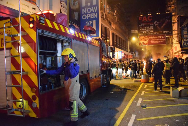 | Keywords: 2016 Mong Kok civil unrest fireman.jpg zh 消防員到場撲救火焰 http //www voacantonese com/content/hk-lunar-new-year-fish-ball-protests-clash-with-police-live-qand-a-20160209/3183142 html Iris Tong 2016-02-09 PD-USGov-VOA 2016 Mong Kok civil unrest Fire engines of Hong Kong |